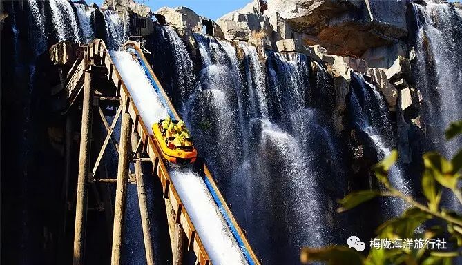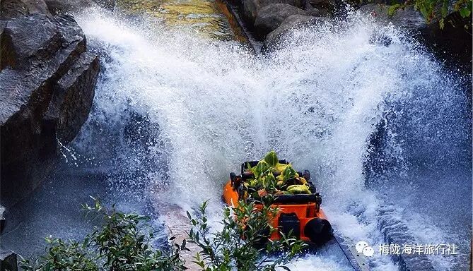09:30-10:00步行到达【大峡谷】瀑布观景台(目前中国大跨度的滨海人工瀑布大峡谷瀑布参观留影)穿过瀑布来到一个美洲主题小镇海菲德小镇,主要包括天幕、海菲德剧场、湖畔美食廊小镇客栈等特色项目,天幕长120米宽12米的LED天幕,太空、海洋、森林交替变幻的壮观场景,环绕立体声营造的逼真音效,天街乐队的热情表演,让人目不暇。 10:00-12:30水战船、水上人家、咆哮山洪等机动游戏;4D影院剧院(平日免费,周日2元/副)可同时容纳200人,影片《深海迷航》让游客跟随二战期间一艘德国潜艇展开了一次奇险深海旅程。丛林穿梭880米的丛林穿梭轨道带你曲径寻幽,让喜欢探险的人们惊呼过瘾。地心4千哩再现凡尔纳畅销科幻著作《地心游记》,与著名的地质学家奥托教授一起穿越火山,危机四伏的地心,神秘而危险的任务,飓风营救拯救地球的艰巨使命,智慧与勇气并肩鏖战,必将历练出无数圣斗士。咆哮山洪2000立方米的洪水倾泻而下,爆破、枪战、烟火、声光、滑水……势不可挡的音效和光影特效冲击,讲述奇幻神秘的山洪故事。冒险海滩7000平米室内水上戏水天地,滑板冲浪、大碗和U型滑道、风压造浪和漂流河、室外滑道等全方位的水上游乐设施,让你不亦乐乎!音乐喷泉千变万化的喷泉造型,五颜六色的彩光照明,反映了音乐的内涵及音乐的主题。冒险岛摇曳的椰树、细腻的海沙、3米高的巨浪“气势汹汹”动感海洋中飞扬青春和激情。