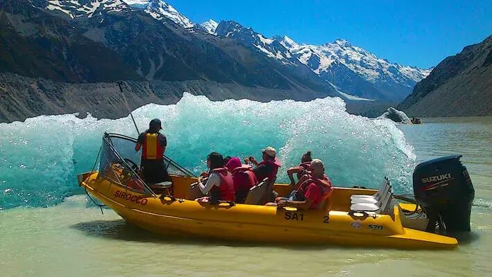 (在库克山可以搭乘直升机游览库克山和塔斯曼冰川,并降落在冰川之上,