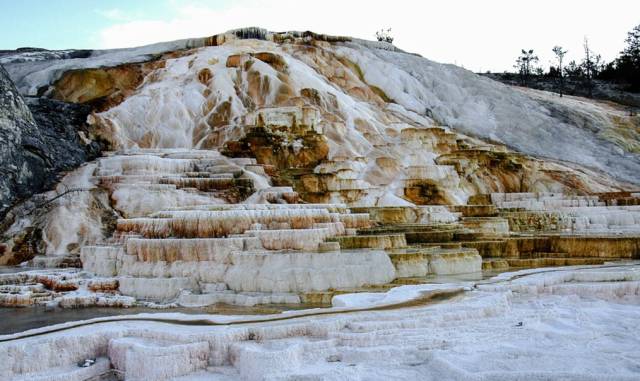 但由于2002年的一次地壳变动,导致大部分热泉停止活动,微生物也大量死亡,变成了现在大家所看到的灰白色粉末。专家表示,未来几年,猛犸象温泉仅剩的热泉泉眼也将干涸消失。