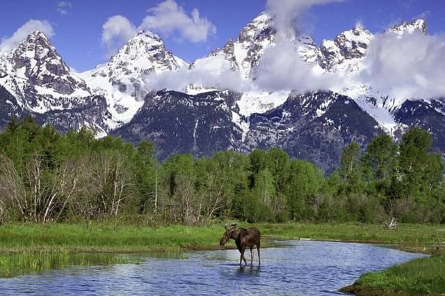 离开黄石,下一个目标便是大提顿国家公园。和恢宏大气的黄石公园相比,大提顿国家公园以它特有的悠然宁静著称,细水长流婉如细细银链的瀑布,美得让人窒息。这里还是世界著名的野生生态系统,是世界上最大的麋鹿群出没地。