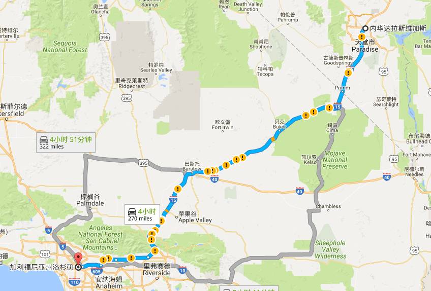 洛杉矶 — 金曼 — 佩吉 — 布莱斯 — 拉斯维加斯 — 洛杉矶