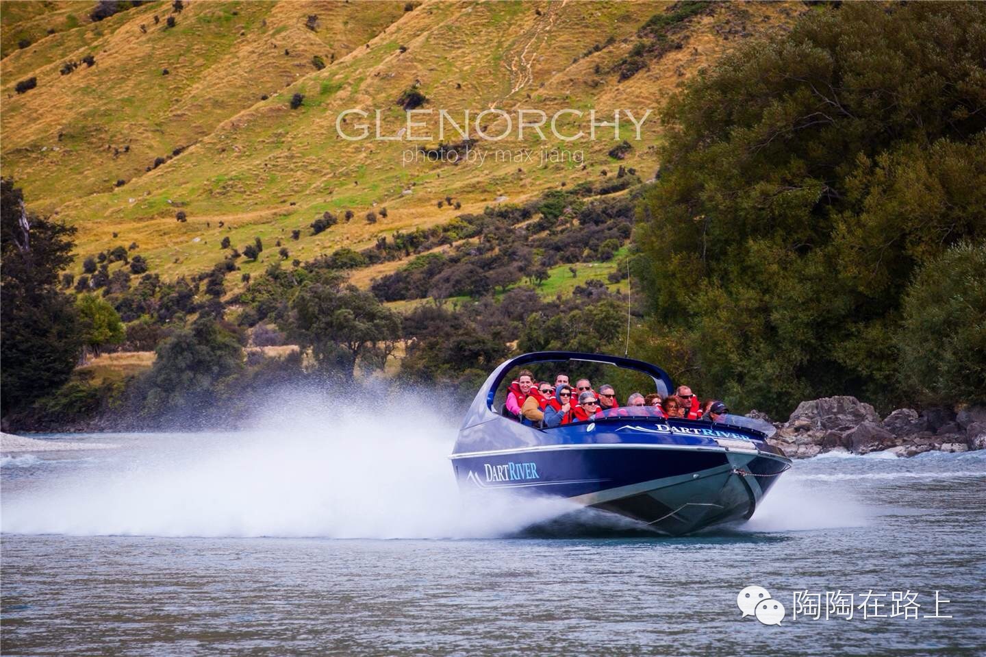 今天的魔戒喷射艇之旅是珮珮最喜欢的活动,也是皇后镇的黄牌节目。喷射艇游Dart River,好玩又刺激,强烈推荐。