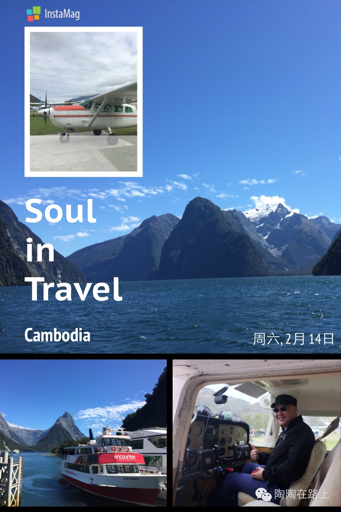 早上的节目是游米佛峡湾 Milford Sound。皇后镇去峡湾来回大概600公里,飞机双程只需1小时左右,大巴可要8小时。因为是情人节,我们奢侈了一把选择了小飞机,在空中看峡湾,看雪山,那种体验超赞。某人运气好坐上飞机副驾,又一次满足了装captain的愿望。