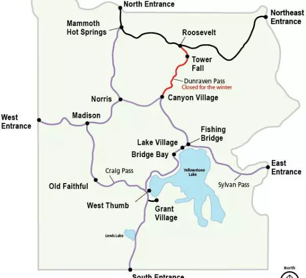 黄石国家公园的旅游季节划分为界限分明的两季。公园里的公路从5月到11月初允许汽车通行,从12月底到次年3月只对雪上交通工具(雪地摩托车、雪上巴士和滑雪板)开放,其他时间公园将会关闭。由于秋冬下雪,东路路面情况大多不好而关闭,此外Canyon到TowerFall一段亦险峻,夏季也危险,就算换上雪胎/铁链也不宜。