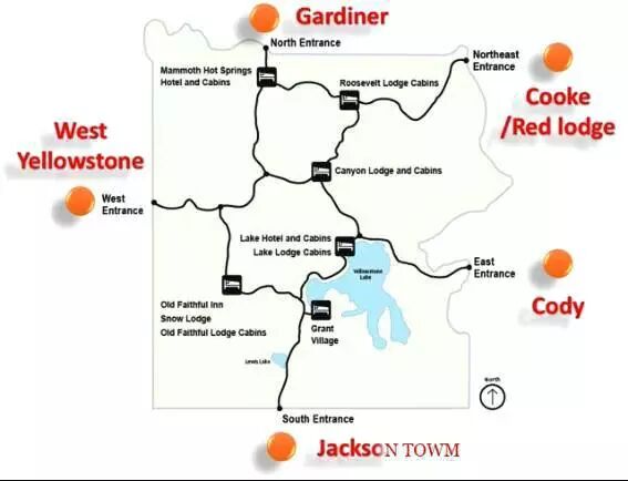 杰克逊Jackson(怀俄明州WY):位于黄石公园南边,是一个旅游小镇,靠近大提顿公园和黄石南门。
