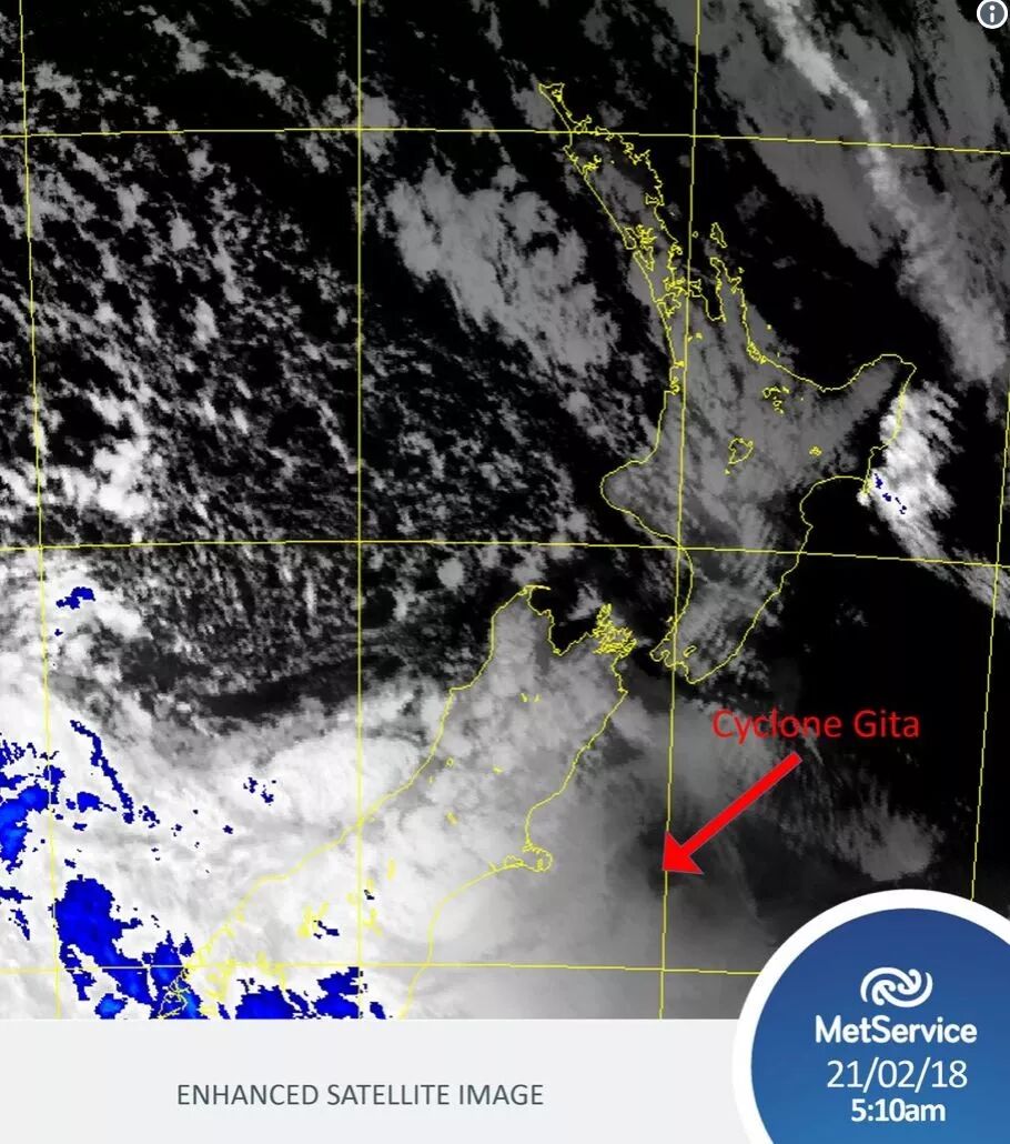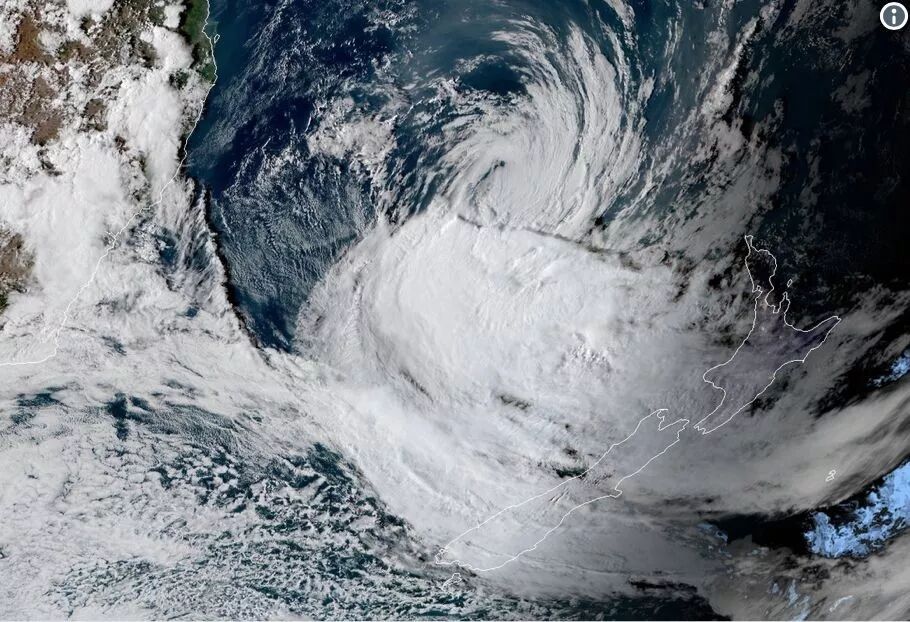 今天早上5点,热带气旋位于新西兰西北方向,正在往东南方向快速移动,袭击南岛地区。新西兰中南部地区多个地区宣布陷入紧急状态。