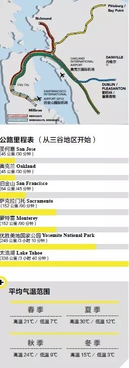 三谷地区与旧金山相邻,坐落在距离金门大桥一小时以内车程的丘陵之间,因每年平均有264天的日照时间而享有“湾区阳光地带”的美称。