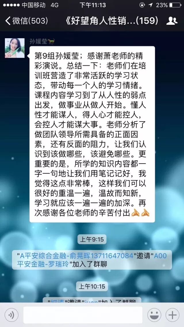 夏桂珍总监对平安家人们的学习非常重视,一起学习的同时,不断总结和分享。小伙伴们的学习十分积极主动,轻松愉快学习的同时,真正的贯通销售知识,全面的掌握增员技巧。