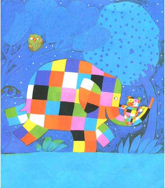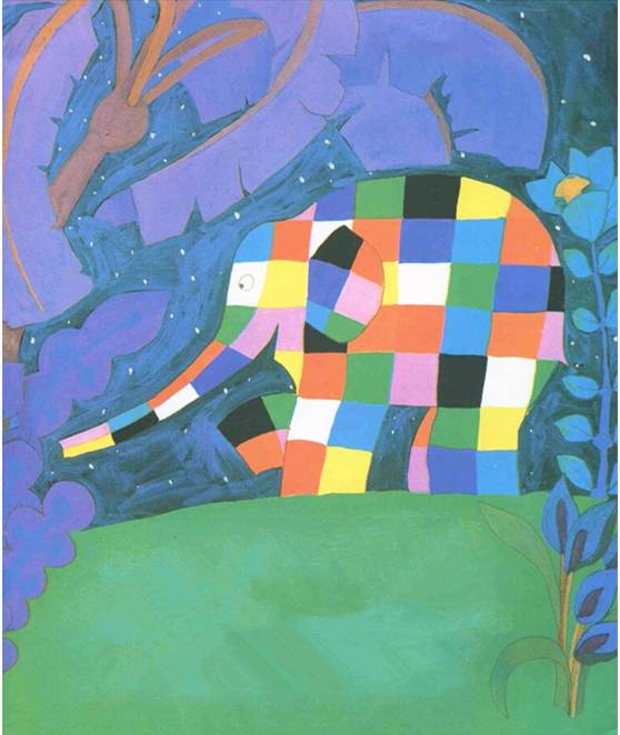 天已经黑了,满天星星,花格子大象艾玛忽然听到谁在哭。是象宝宝。