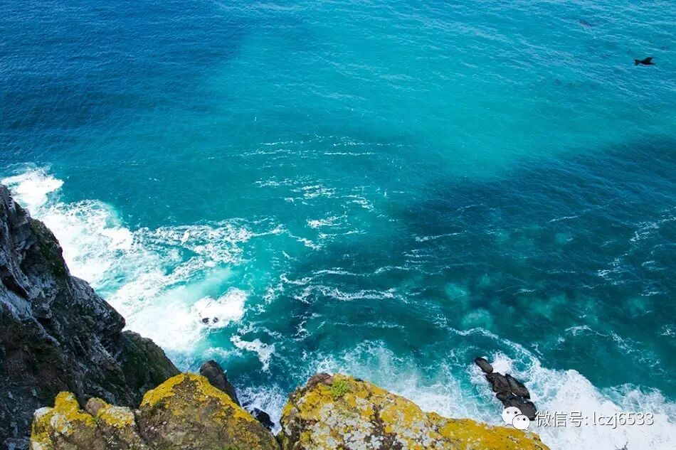 这里既有大西洋的不羁和澎湃,又有印度洋的细腻和激情。在这里,大西洋和印度洋的海水分界不是很明显,但两股水的底色也略有不同,他们很快交融在一起,形成一种绝美。下到临海处,但见一块长条黄色木牌上用两种文字标明:好望角/非洲大陆最西南端/南纬34°21 ' 26"/东经18°28 ' 26"。