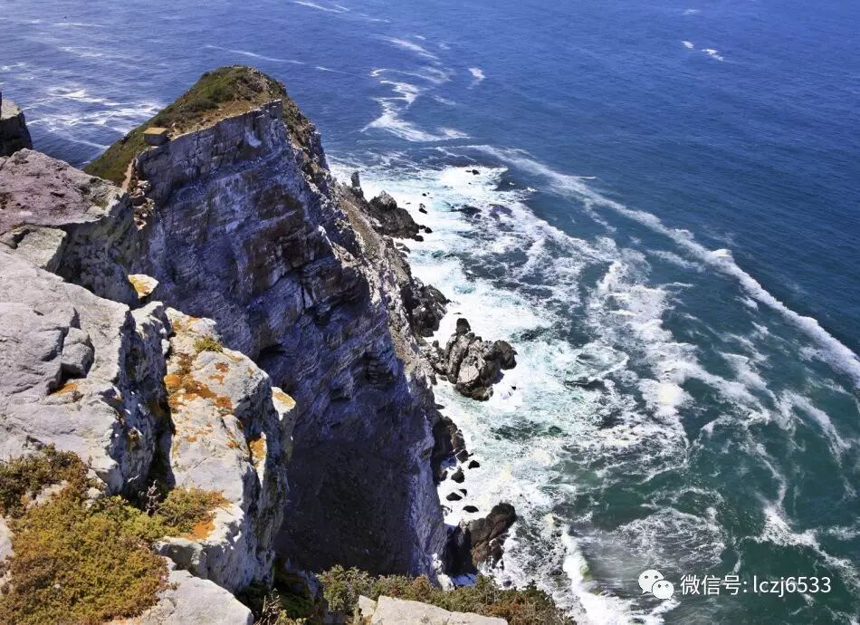 在好望角凭栏而望,可以看见远方的海天一色,也可以看见脚下的浪花飞溅,可谓气象万千。好望角是一条细长的岩石岬角,像一把利剑直插入海底。