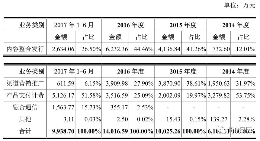 公司是移动文化娱乐产业领域的整合服务提供商,主营业务是为语音杂志、游戏、动漫、阅读等移动娱乐产品提供内容整合发行、渠道营销推广和产品支付计费等一站式服务。此外,2016年以来,公司开始尝试企业融合通信业务。