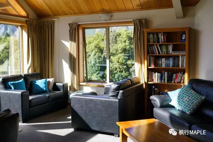 (1)预定这家也是被超漂亮的公共厨房和客厅所吸引,在二楼的大客厅的沙发上抬头就是库克山的峰顶,非常赞的景观
