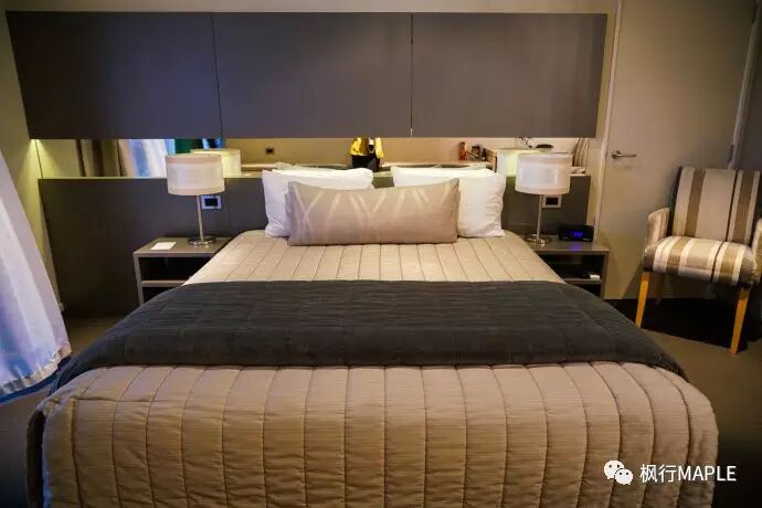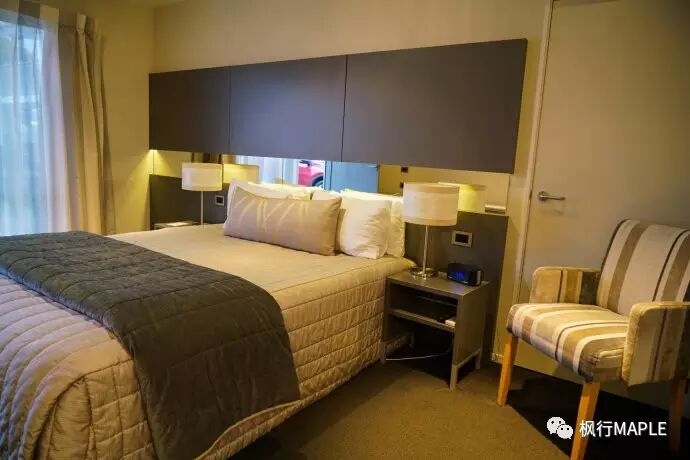 (3)新西兰的最后一夜再次入住,但免费升级到商务房,一下子高大上了。大床很舒服,装修也很时尚。洗漱用品充分,屋内有纸抽。