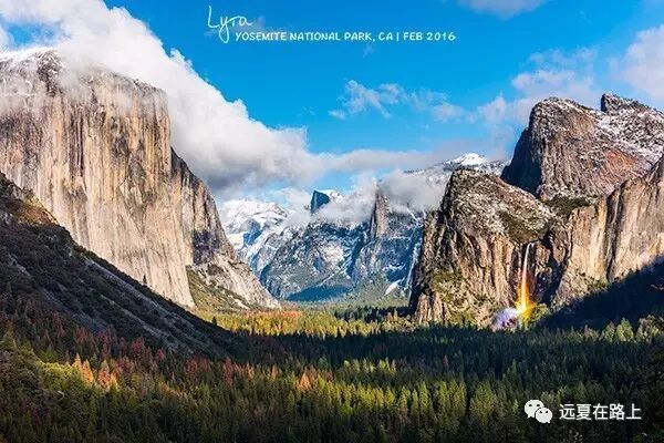 加州的Yosemite National Park优胜美地国家公园,冬天能看到山谷里的雪景。冬末春初的时候,融雪增多,瀑布水量比较大,不像夏天,天气干旱一点瀑布就几乎要断流了。格外推荐的时间是在二月中,刚好有火瀑布的奇观,也能看雪。具体攻略可以参考火瀑布重现优胜美地 | 二月流火,熔岩落山。