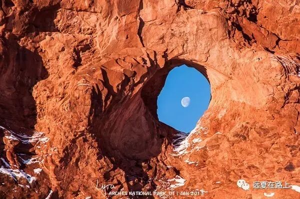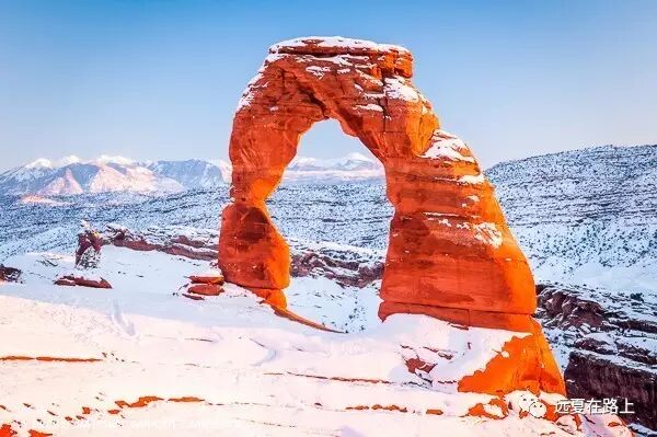 这五个公园里,Arches恐怕是最能让人有“Wow”的感觉的一个,因为那些天然石拱真的很……大……很……大……远看也许不觉得,但是站到石拱脚下抬头看,还是挺震撼的。最有名的是Delicate Arch,在各种摄影集或者杂志上都很容易见到。如果冬季去,走去Delicate Arch路上会有雪,需要穿防滑一点的鞋子。公园建议给鞋套上冰爪,不过以我们的亲身经历,除非你的平衡性差到走平路都要摔大马趴,否则大可不必,小心点就是了。