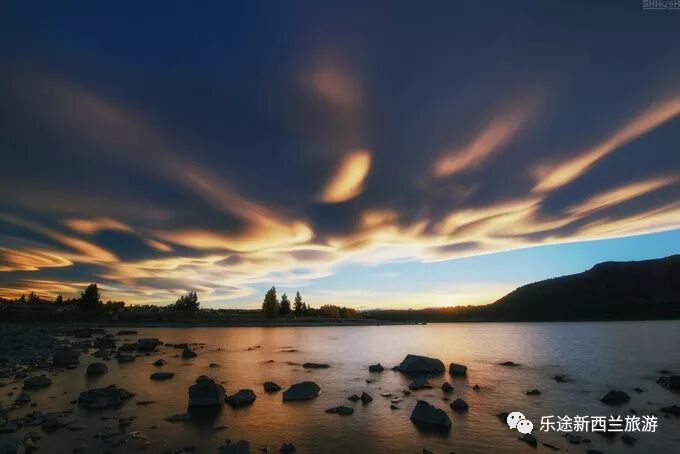 福克斯小镇周围我最推荐的景点还是著名的马瑟森静湖。因为地理位置的关系这里的湖水常年静如镜面,能将远处的库克山倒映在湖中。当天天气还是不够给力,远处的云雾一直缠绕在库克山头,直到日落也未散去。不过临近日落太阳的光影撒在半山腰上色彩还是非常的漂亮,也算不虚此行。