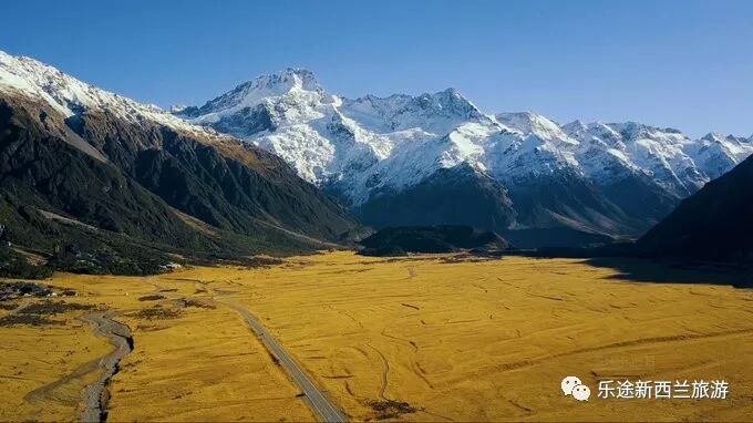 进入库克山区前的这条Mountain Cook Rd是条笔直向着雪山的路,在这里拍些雪山公路的自拍再适合不过。