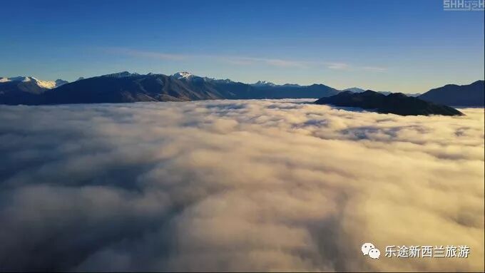 第二天瓦纳卡湖航拍了日出,一大清早湖面起雾,并升到高空变成一片云海。航拍飞到了500米拍到了云海日出的场景。