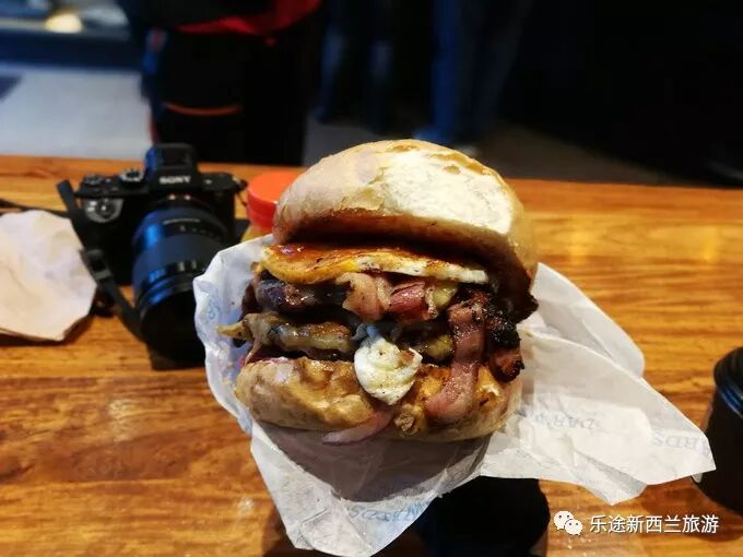 皇后镇真的是个非常适合度假的地方,生活节奏缓慢,美景美食遍地。拍完日出后去了一家非常有名的汉堡店,号称best bugger in newzealand。试了下果然名不虚传,汉堡就两个特色,好吃和大,管饱管美味。