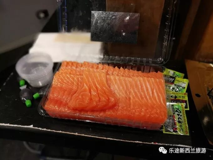 普卡基湖除了美丽的风景,还有一个著名的就是高山三文鱼。四个人点了500g的三文鱼片和500g的烟熏三文鱼,原本以为会不够,不过实际吃的又撑又腻,感觉吃了一年的份,今年都不想再碰三文鱼了。