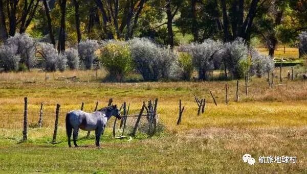 身后的山崖上石笋风化成一对情侣望着西方,曾经淘金潮的方向。小镇之外便是连绵的牧场,依旧居住着那些牛仔的后人们。秋色里的骢色杜马毫不关心陈年的旧事,水草丰美就是它的全部。