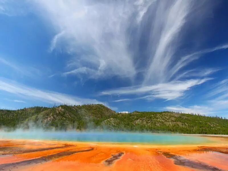 :早上前往电影《与狼共舞》的主要场景 - 大鹿角印第安保护区。跨越美国分水岭落基山脉,进入世界第一个国家公园 - 黄石公园。坐落在世界最大的活火山口上,黄石拥有超过10,000个地热现象。高耸的雪山,瀑布河流,广阔的草原森林,雾气腾腾的地热共同编织出一幅绚烂多彩的图画。在这块古老的火山高原及全美最大的野生保护区,黑熊、灰熊、高角鹿和多种稀有水鸟以此为家。夜宿黄石公园。