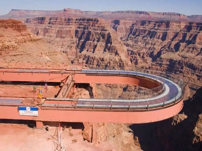 清晨前往美洲最高的胡佛水坝, 参观其水坝工程及发电厂,眺望北美最大的人工湖-密德湖。大峡谷西缘属于印第安保护区,团员需在访客中心换乘西峡谷专车进入峡谷区,到达总站(Terminal)后,你可以乘坐直升机及观光船观赏大峡谷的美景,近距离的感受峡谷的壮丽以及科罗拉多河的秀美。之后再乘坐园内班车去到老鹰崖(Eagle Point)和蝙蝠崖(Guano Point),在老鹰崖你可以自费参观位于峡谷边缘的全世界最高的空中步道-“玻璃桥”(Skywalk),它悬空于海拔4000尺之上,耗资六千万美元,能同时承受71架波音747客机(约七千一百万磅) 的重量。在这块用玻璃制成的平台上,你可以欣赏到720°度的大峡谷美景,由不同的角度欣赏阳光与峡谷岩壁折射而形成的奇景,峡谷的壮观让您不得不赞叹大自然的神奇和伟大。傍晚时分回到拉斯维加斯。晚上可自费观看拉斯维加斯的表演秀。*参加此行程的团员必须购买西峡谷门票$80(含午餐)住宿:Circus Circus Las Vegas