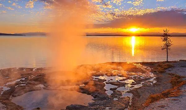 我们黄石公园的游览分为两天,第二天是重头戏,所以我们第一天只沿着黄石湖散步,但是已经可以一窥黄石温泉的壮丽面貌。