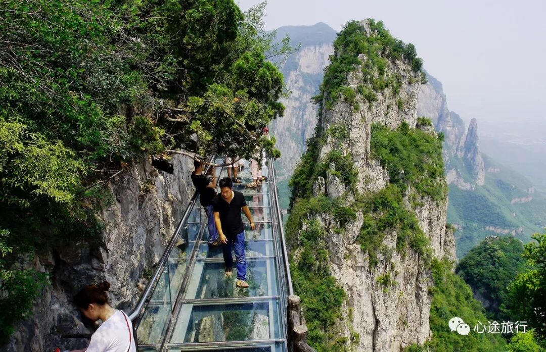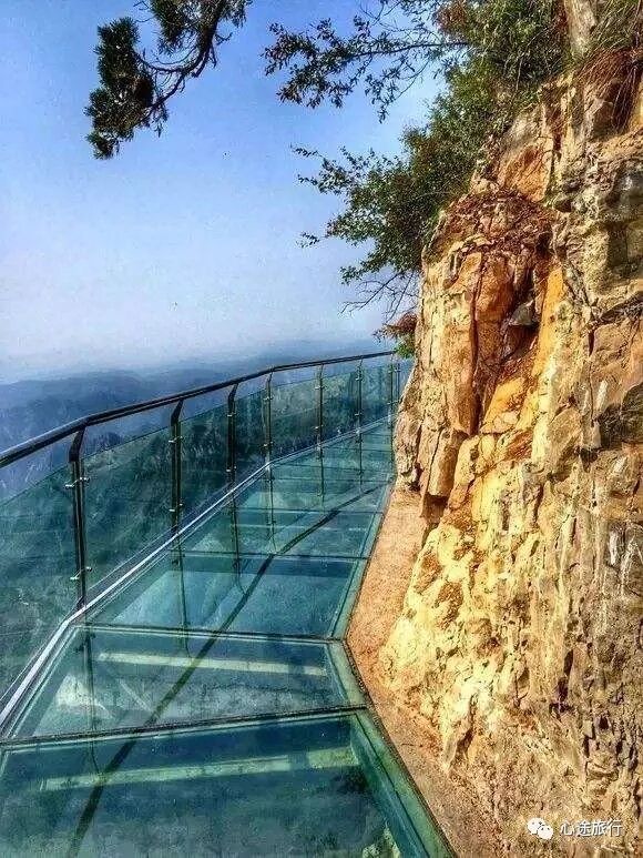 2015年9月20日,云台山景区新建的一期U型玻璃栈道正式对游客开放。站在千米高的玻璃上,整个人仿佛悬空而立,透过玻璃往下望去,不仅山间美景一览无余,还有一种紧张刺激的快感,其惊险刺激可与举世闻名的美国大峡谷 “天空之路” 玻璃走廊相媲美。