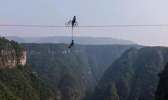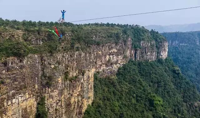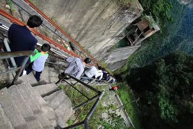 另有一条坡度达50度斜角的1386级石阶的“通天梯”可达谷底;小编温馨提示,爬不上就缓几口气再爬吧~~