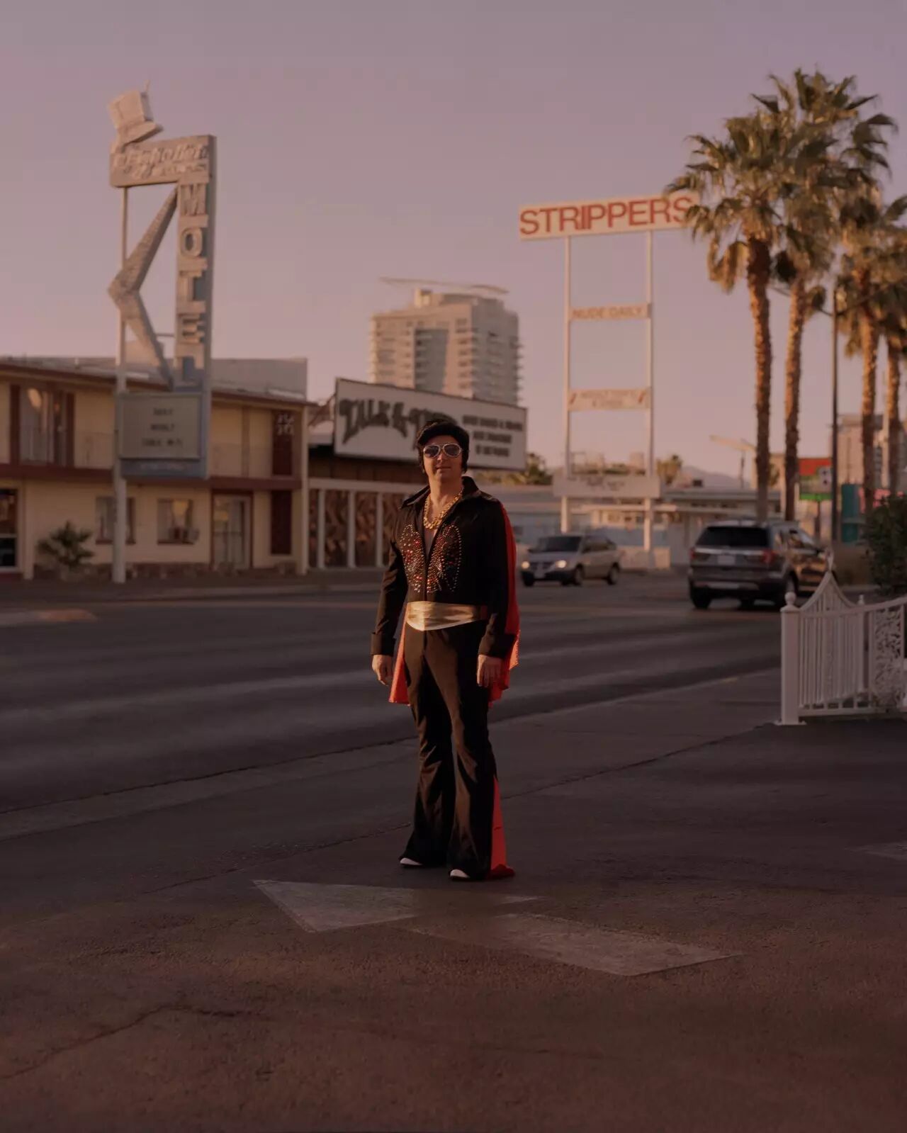 Shorosky 说:“来拉斯维加斯的第一天我就想探索这里的标志性事物,‘猫王’ Elvis 当然是其中之一。”不是所有拉斯维加斯的事物都像它们所表现出来的那样形神兼备。例如 Zach Brewer 模仿起“猫王”来就一点儿也不专业。他和一个来自休斯顿的朋友受邀来为婚礼派对助兴,于是他装扮成了 Elvis 的样子。 Shorosky 说:“他只是穿着跟‘猫王’一样的服装,并且喝了很多酒。”