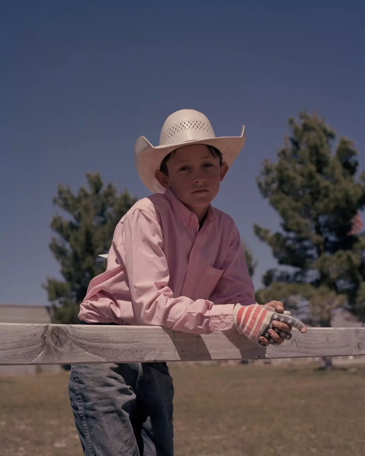 14 岁的 Jace Thorstenson参加了全国青少年牛仔竞技比赛。他的比赛项目是双套绳,比赛在城市西南部举行,持续时间约半个小时。Shorosky 说:“他年纪轻轻,却像一个 40 多岁的人,有着那个年龄的态度和品格。我想拍到他作为青少年的这一面。因为他生长在一个需要成熟的环境中,因而造就了他现在的样子。”
