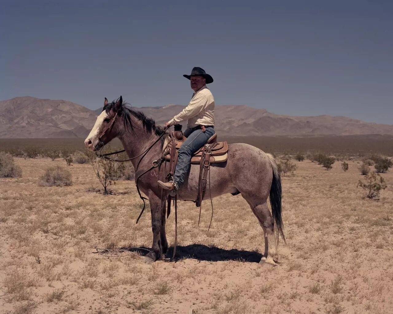 这张照片是在拉斯维加斯以外的山脉红石峡谷国家保护区拍摄的,这个景区通常会引来像图中德国夫妇这样的游客。他们在那里与一群摩托车手进行越野公路旅行。Shorosky 一开始被他们背心上的补丁吸引。他说:“摩托车手在身上穿戴一些标志性的物件是一种通行权。”