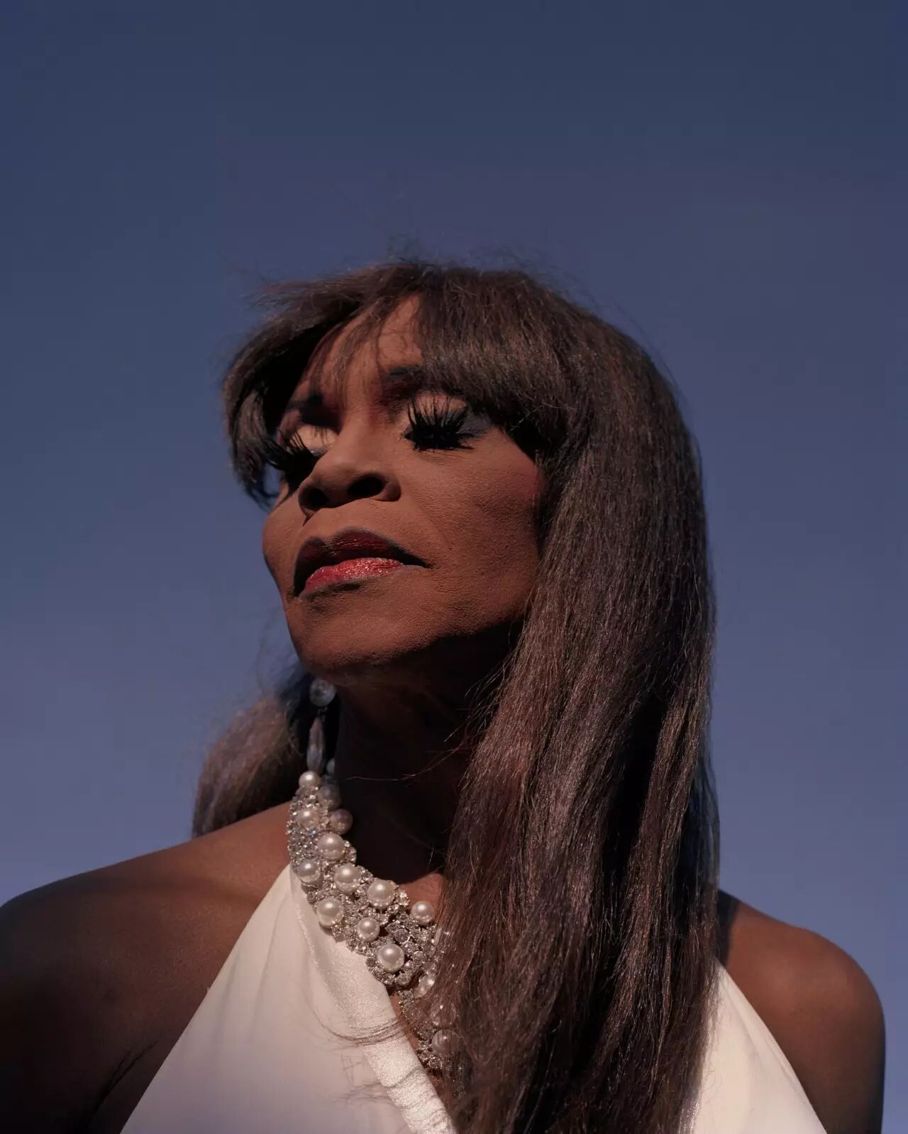 Toni James 已经在拉斯维加斯呆了 30 年了。Shorosky 说:“无论我去哪里,无论我和谁聊天,这里的每个人都知道 Toni James 是谁。”他第一次遇到 James 是在一个廉价小酒吧 Double Down Saloon。当地人经常聚在这里玩乐,于是 Shorosky 当时决定在那里拍照。Shorosky 说:“他先是在这个朋克酒吧的洗手间里化好妆,然后才准备好接受我给他拍照。”