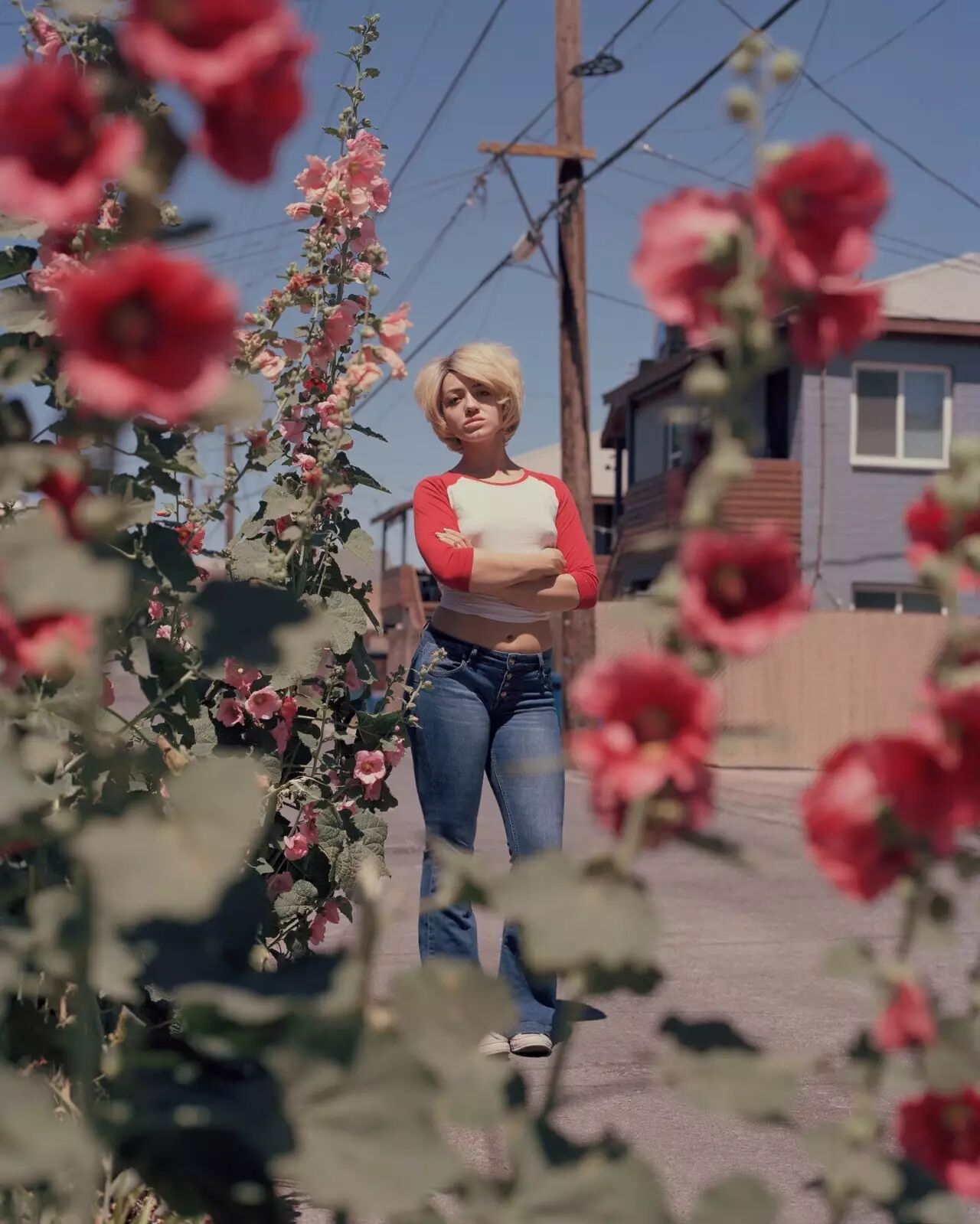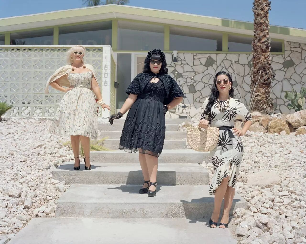 这张照片是在一个中世纪现代风格的社区 Paradise Palms 里拍的。这里从 60 年代到现在都没有太大变化。Shorosky 说:“过去几年来,这里涌入了许多年轻人,所以这些三十岁的孩子们从某种意义来说推动了这个区域的历史性发展。”图片里从左到右依次是 Jaede Mansfield、Denise Heximer 和 Jasmin Rodriguez,他们都是旧式风格爱好者。Shorosky 认为:“尝试重温经典拉斯维加斯昔日风光的想法非常美好。”