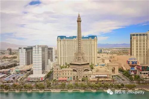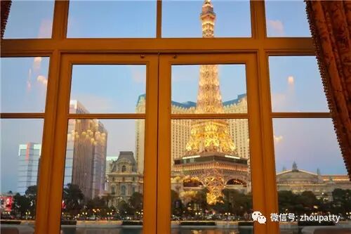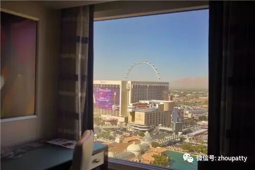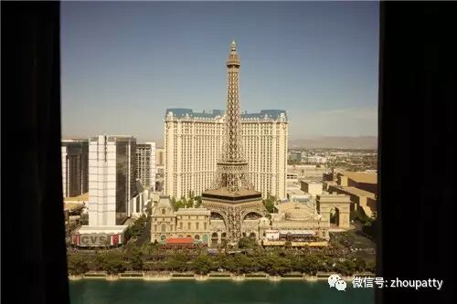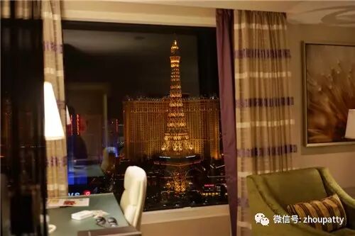 从房间不仅仅可以欣赏到音乐喷泉还能俯瞰拉斯维加斯大道,铁塔和摩天轮的美景~