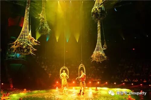 作为太阳马戏团第一个以亚洲文化为主题的马戏,其中包括服装、音乐和表演风格,也是第一 个包含了大量武术表演的节目,是杂技团斥资两亿两千万打造出来的重头戏。黑白色的脸部的 化妆和应用军事艺术技术让KA有一种类似于日本歌舞伎剧场的形式. 这个表演的名字其实是由 日本的这个歌舞伎剧场得来的。 整个表演是全景式的,演员在观众的上下左右活动着。但表演中心集中在两个巨大的舞台上。 每一个舞台都重达五十吨,用四个75尺高的液压活塞,上下左右地转动着。整个舞台360度地 旋转着,同时也被投影覆盖着,各种景象随着演员的活动变换着。有时是高山,有时是流水, 重重叠叠,如诗如画。整个场景非常壮观,从最低点到最高点,有十五层楼那么高。但是大家也只能通过描述现象一下啦,因为内部是不允许拍照的~