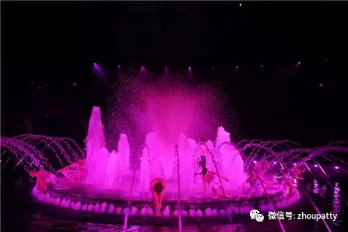 这个喷泉就是Bellagio酒店花费十亿美元,运用歌剧、古典乐以及电子舞曲音乐配合精心设置的1000多个喷水装置的音乐喷泉秀,从房间的窗户就可以看到~每天门下午三点开始,每隔半小时就上演一次,到了晚上7点,就会增加频次,每隔15 分钟表演一次,一直持续到凌晨12点。