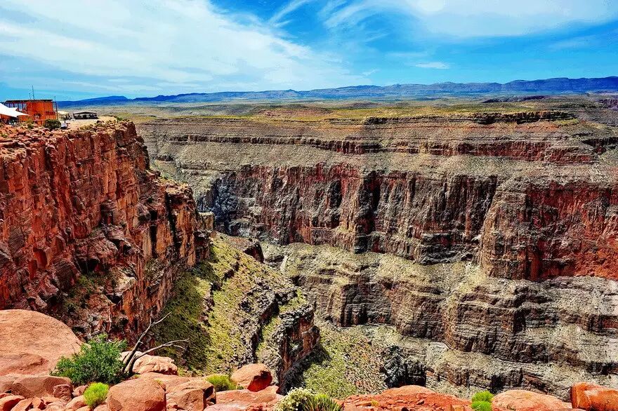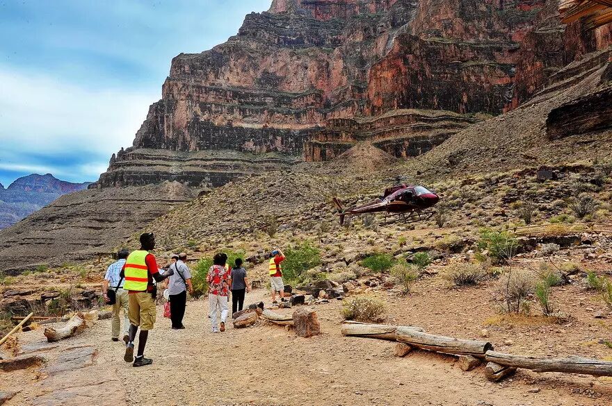 清晨5点半从拉斯维加斯出发大约2个小时到大峡谷的游客中心。在哪里换乘公园的大巴大约40分钟到达景区的服务区。从这里可以坐直升飞机游览峡谷(要花费179美金包括峡谷底部科罗拉多河的汽艇费用)。服务区有大巴在景点间行驶,你可以随意上下。其实只有两个景点,老鹰峡 ,蝙蝠峡。