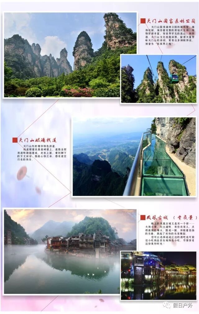 ●门票:韶山、大峡谷玻璃桥、杨家界、金鞭溪、袁家界、天门山-玻璃栈道、凤凰;