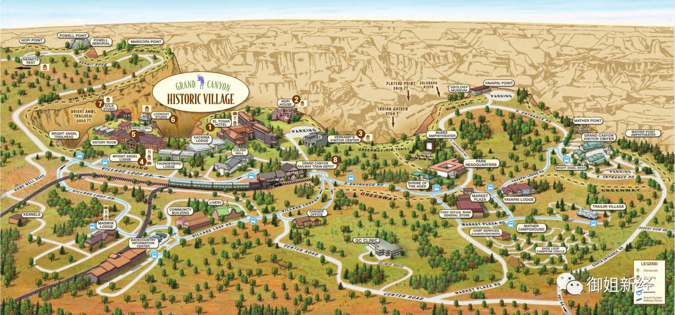 步行前往Mather Point,前往Yavapai观景点和地址博物馆。