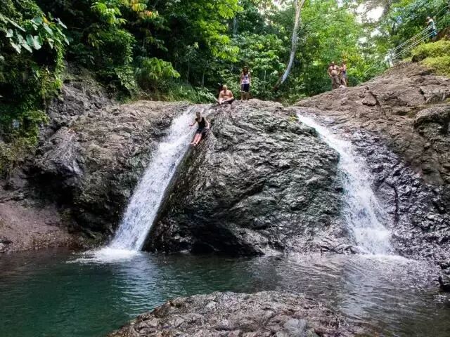 顺着湿润光滑的石壁,潺潺的溪水与你一同飞流直下,让你瞬间找到童年的乐趣。