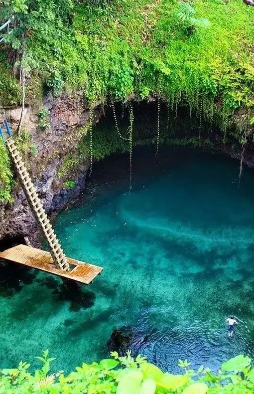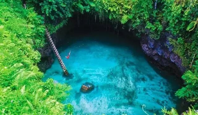 萨摩亚岛上有一座有名的碧绿色天然泳池——苏阿海沟,它是由于数百万年前强烈的火山活动形成的,深度大约达30米。