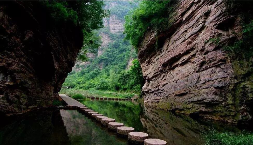 龙潭大峡谷是一条紫红色石英谷,全长12公里,分为龙潭水峪、高峡翁谷、山崩地裂三个各具特色的景段,谷内嶂谷、隘谷呈串珠状分布,云蒸霞蔚,激流飞溅,红壁绿荫,悬崖绝壁,不同时期的流水切割、旋蚀,磨痕十分清晰,巨型崩塌岩块形成的波痕大绝壁国内外罕见。