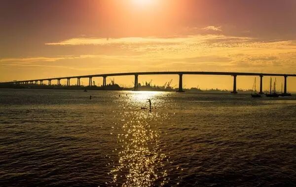 圣迭戈-科罗纳多大桥(San Diego-Coronado Bridge)大桥位于美国西海岸,加利福尼亚州南端靠近墨西哥边界的圣迭戈市。大桥跨越圣迭戈湾,连接了圣迭戈市和科罗拉多岛,长2.12英里。75号干线公路通过大桥,在圣迭戈与5号州际公路交汇。大桥中部200英尺的净空足以让最高的轮船通过。
