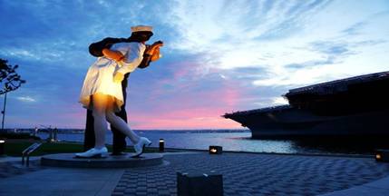 圣地亚哥军港为美国西海岸的加州南部唯一天然良港,圣地亚哥港于1542年始建。1980年后为美国第3舰队主要支援基地。海军基地东岸部分位于湾的中部,码头线长16.5千米,水深6~11米,基地西岸部分在科罗纳多岛北部,位于圣地亚哥港入口,设有两栖作战基地和海军航空站,美海军第3舰队司令部及所属许多部队驻此,舰队半数以上舰艇包括航空母舰、核潜艇等以此为母港。所以,对一个军迷来说,圣地亚哥就是梦中圣地!