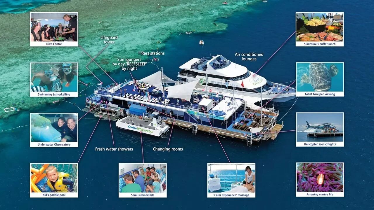 您将会有 5 个小时的时间充分感受外堡礁的美丽,享用 BBQ 澳式烧烤午餐。餐后您可选择浮潜或在船上倾听现场演奏的音乐,欣赏美景。