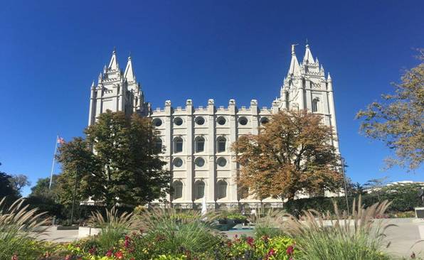 圣殿广场:,洁白神圣,是基督后期圣徒教会全球1500万民教众的信仰中心,。