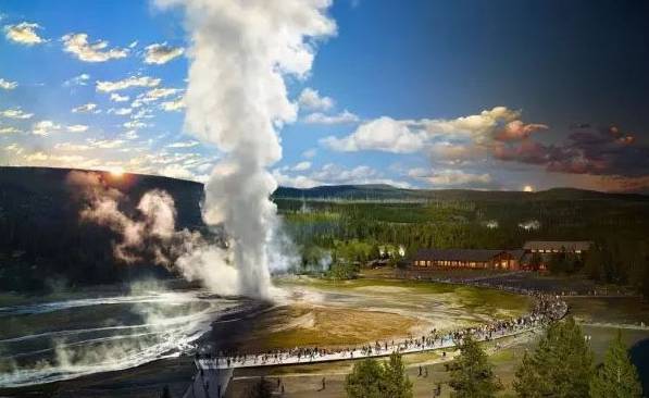 3. 老忠实间歇泉:黄石地标,被誉为黄石公园的名片,科普黄石地质现象的首选之地。它如上帝设计的独特花朵,每93分钟定期喷发。风雨无阻,因此得名‘老忠实’。